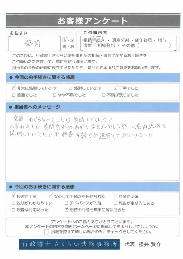 静岡あおい相続遺言相談室では、生前対策について、90分~120分の完全無料相談でお客様のお話しをお伺いさせて頂き、お客様のご相談内容に応じたご提案をいたします。