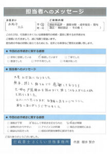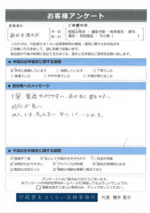 静岡あおい相続遺言相談室へ遺産相続・遺言書・生前対策・家族信託をご依頼いただいた、お客様からのメッセージです。