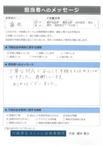 静岡あおい相続遺言相談室へ遺産相続・遺言書・生前対策・家族信託をご依頼いただいた、お客様からのメッセージです。